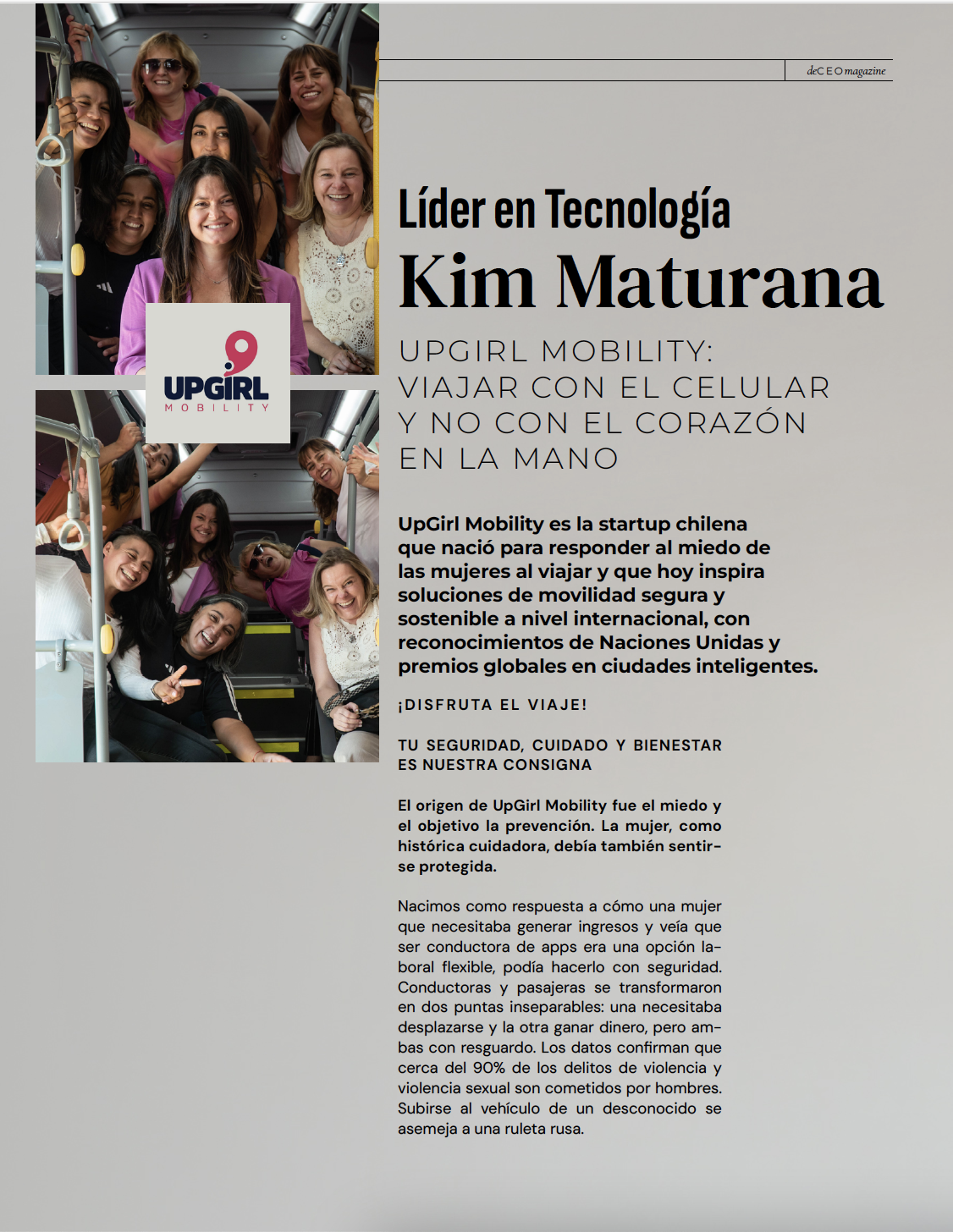 UpGirl Mobility es la startup chilena que nació para responder al miedo de las mujeres al viajar y que hoy inspira soluciones de movilidad segura y sostenible a nivel internacional, con reconocimientos de Naciones Unidas y premios globales en ciudades inteligentes.